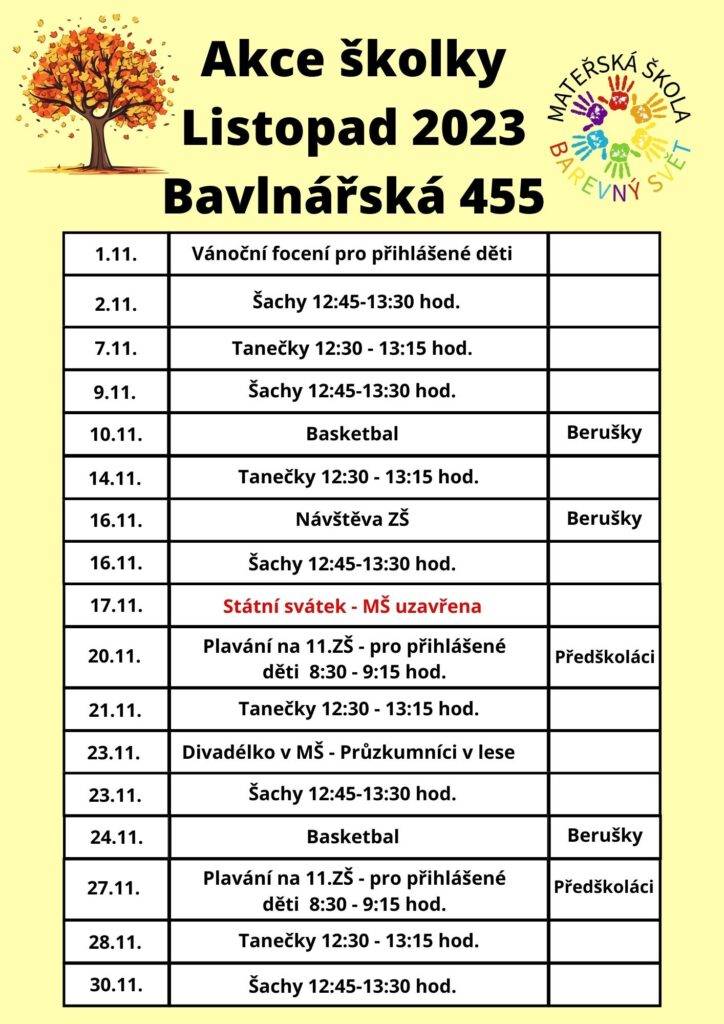 Akce mateřské školy Bavlnářská 455 na měsíc Listopad