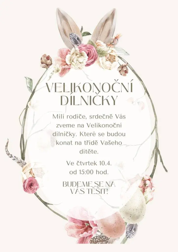 Velikonoční dílničky, Bavlnářská 455 Autor: Barbora WranikováDne 3 dubna, 2025V Berušky, Květinky, Pro rodiče, Sluníčka