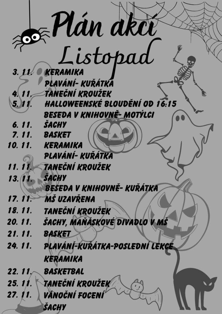 Akce mateřské školy Slezská 770 na měsíc Listopad 2025 Autor: Kristýna NávratováDne 3 listopadu, 2025V Koťátka, Kuřátka, Motýlci, Pro rodiče