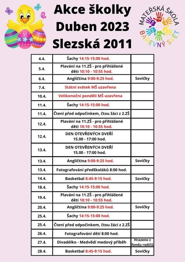 Akce školky Slezská 2011 – Duben 2023